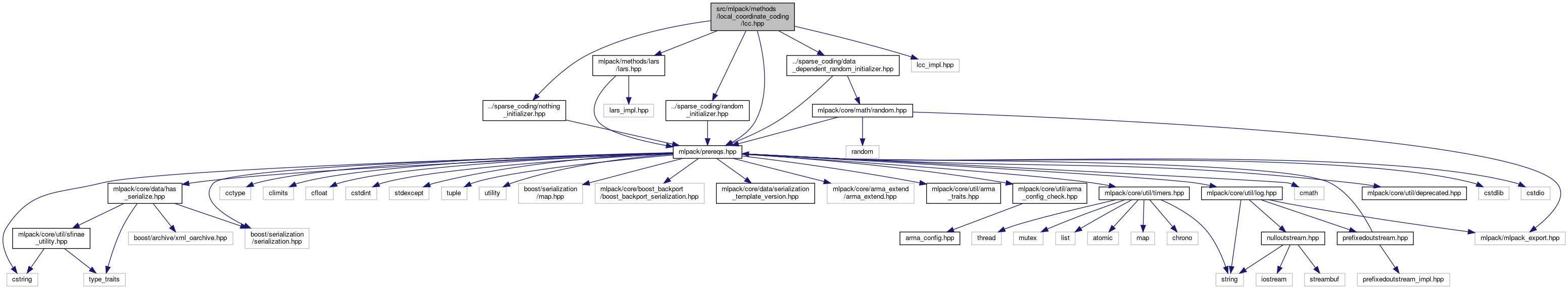 Include dependency graph for lcc.hpp: