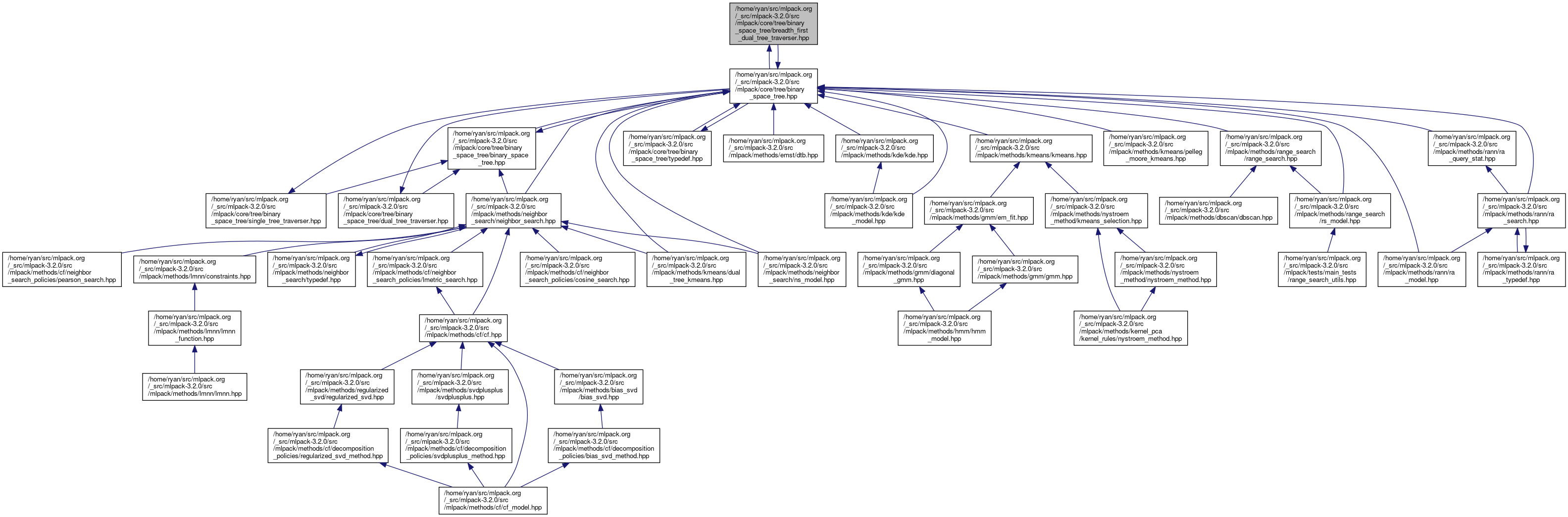 Defines the BreadthFirstDualTreeTraverser for the BinarySpaceTree tree type. This is a nested class of BinarySpaceTree which traverses two trees in a breadth-first manner with a given set of rules which indicate the branches which can be pruned and the order in which to recurse.