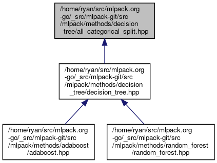 | The AllCategoricalSplit is a splitting function that will split categorical features into many children: one child for each category. More... | |