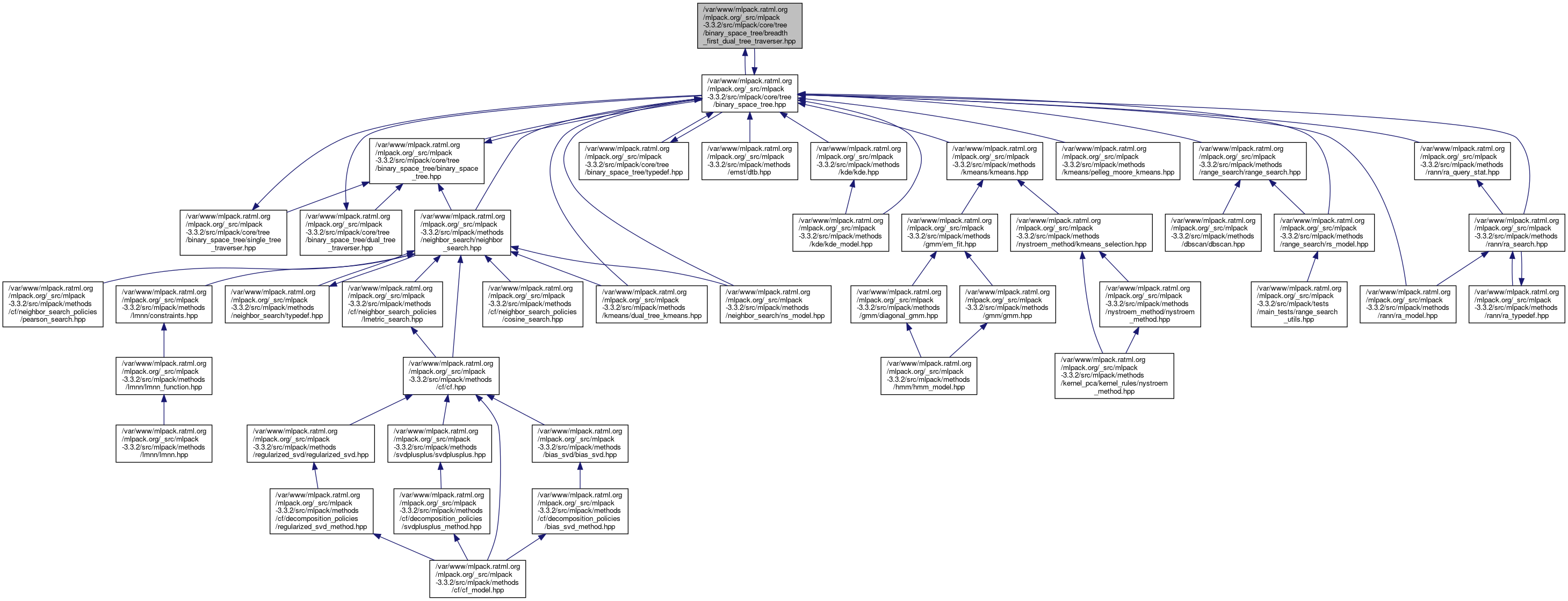 Defines the BreadthFirstDualTreeTraverser for the BinarySpaceTree tree type. This is a nested class of BinarySpaceTree which traverses two trees in a breadth-first manner with a given set of rules which indicate the branches which can be pruned and the order in which to recurse.