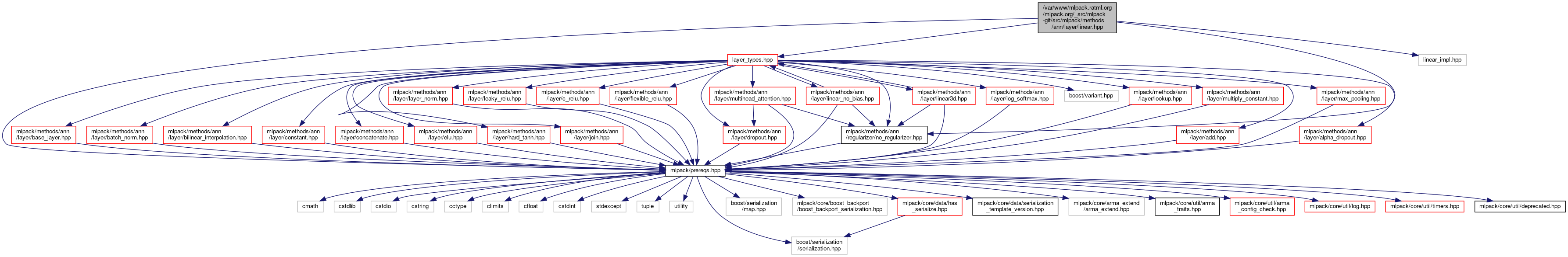 Include dependency graph for linear.hpp: